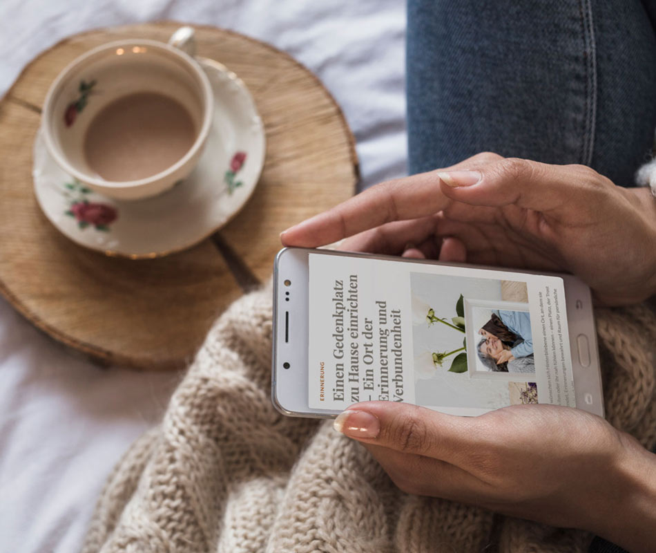 Der Verlust eines geliebten Menschen ist eine tiefgreifende und oft überwältigende Erfahrung, die Schmerz, viele Fragen und eine große Leere hinterlässt. Mit unserem Trauer-Blog geben wir Ihnen eine Hilfestellung – durch einfühlsame Worte, ermutigende Gedanken und gute Impulse, die Kraft und Hoffnung spenden.Die Inhalte sind mit Sorgfalt für Sie zusammengetragen und von Menschen geschrieben, die Ihre Gefühle verstehen. Hier finden Sie schöne Erinnerungs-Rituale, praktische Ratgeber und vielerlei Inspirationen die den Weg durch die Trauer ein Stück leichter machen.Nehmen Sie sich ein wenig Zeit um reinzulesen und zu schauen, welcher der Themenbereiche für sie am hilfreichsten ist.