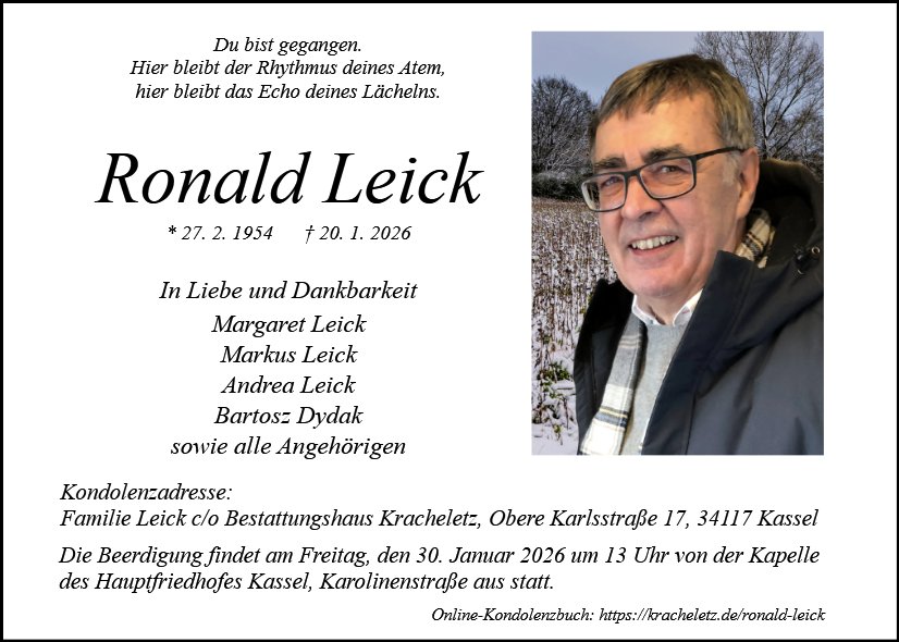 Liebe Familienangehörige, liebe Freundinnen und Freunde von Ronald,
